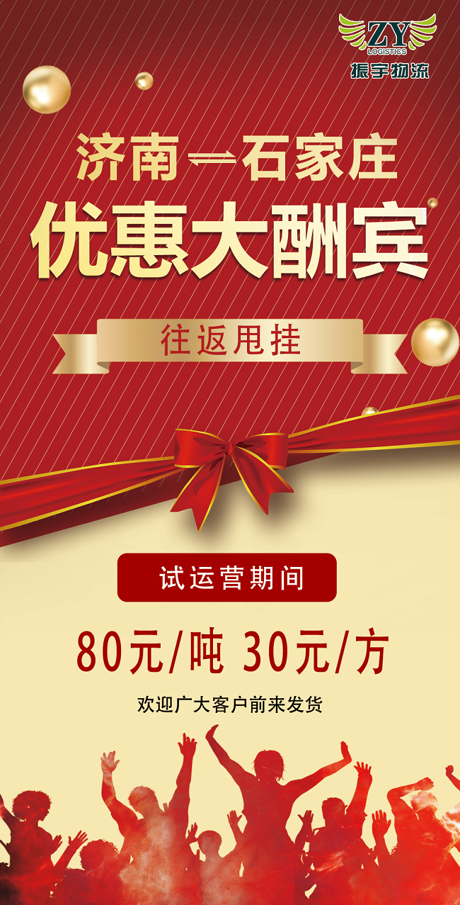 熱烈祝賀振宇物流9.13號(hào)開(kāi)通濟(jì)南到石家莊專(zhuān)線(xiàn)!往返甩掛,優(yōu)惠多多!