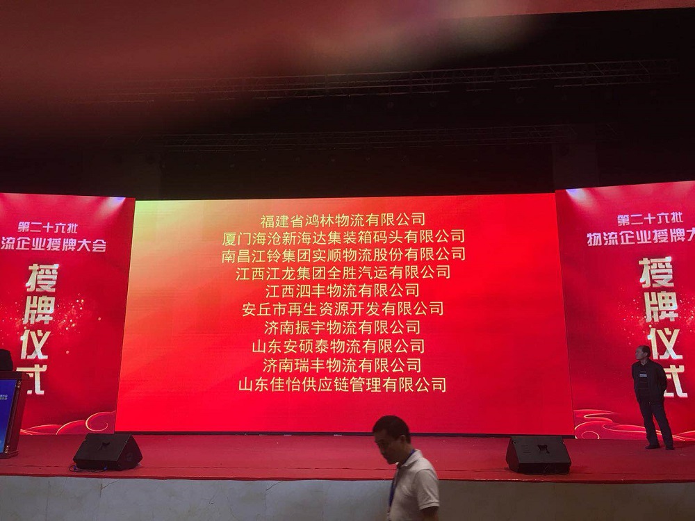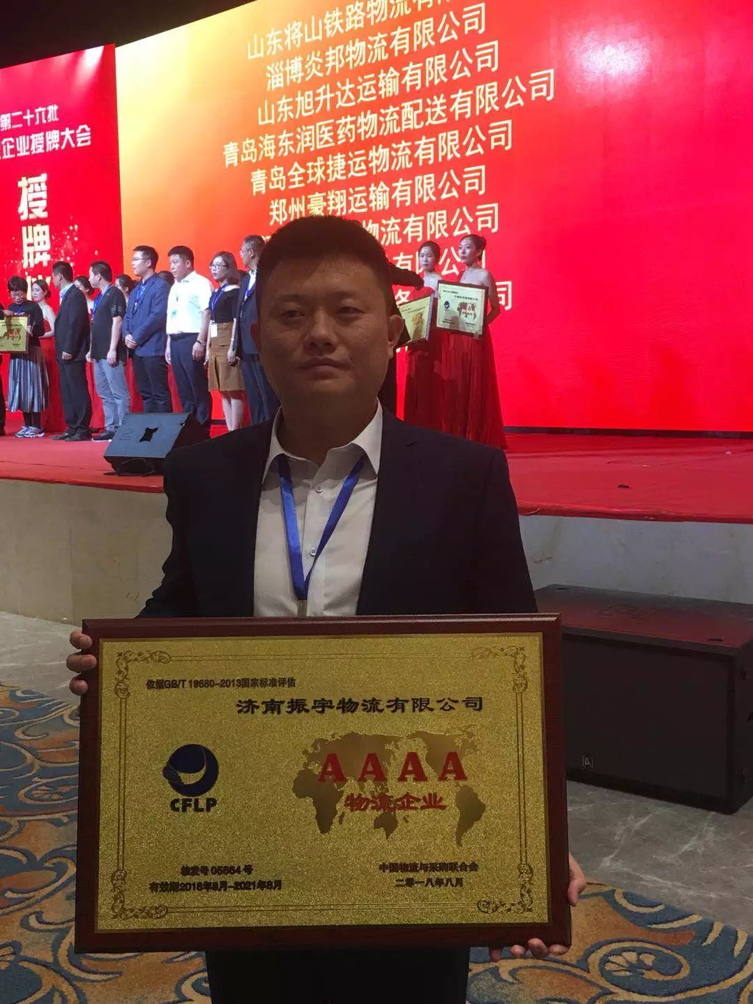 2018年9月16日,由中國物流與采購聯(lián)合會主辦的A級物流企業(yè)授牌大會暨物流業(yè)創(chuàng)新發(fā)展論壇在吉林省長春市隆重舉行。會議對本批A級物流企業(yè)進(jìn)行了集中授牌,濟(jì)南振宇物流有限公司榮獲國家AAAA級物流企業(yè),總經(jīng)理張憲振代表公司出席會議并接受授牌。
