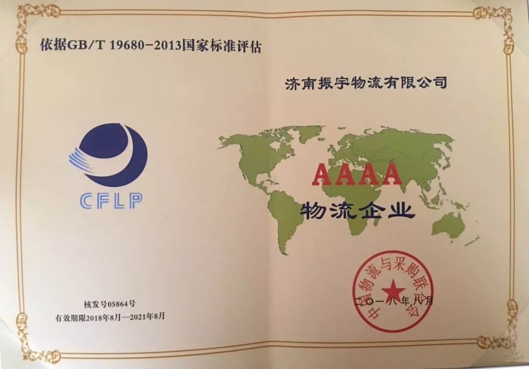 熱烈祝賀濟(jì)南振宇物流榮獲國家4A級物流企業(yè)