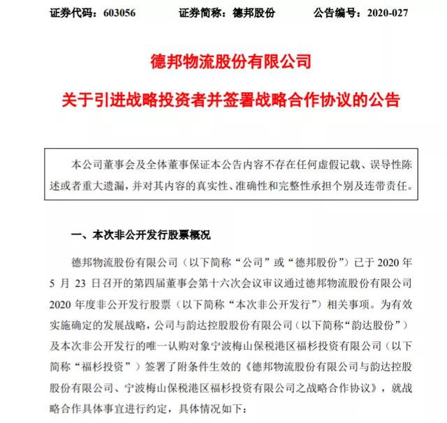 濟南物流公司:韻達(dá)戰(zhàn)略投資德邦,占股約6.5%,快遞投資并購好戲開始?