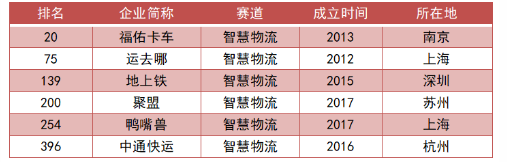 另外,排名前100的企業(yè)有第20位的福佑卡車和第75位的運去哪。福佑卡車作為技術(shù)驅(qū)動型公路貨運平臺,近日已赴美遞交IPO申請,計劃在納斯達(dá)克上市。而一站式國際物流在線服務(wù)平臺于前日宣布獲得中信資本領(lǐng)投,襄禾資本和老股東跟投的新一輪融資,D1輪累計融資額達(dá)1.5億美元,總?cè)谫Y金額超過了3億美元。
