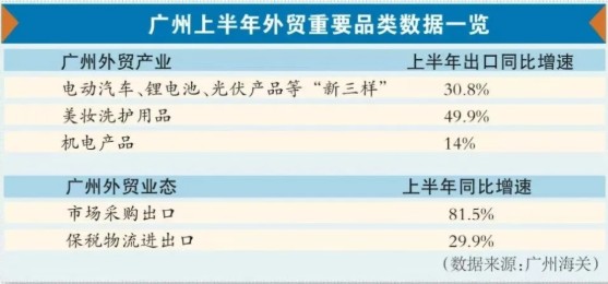 今年上半年,廣州外貿(mào)交出歷史性答卷——進出口總額6050.5億元,同比(下同)增長15.5%,對全國、廣東外貿(mào)增長貢獻率分別達(dá)13.1%和46.7%;出口總額3969.1億元,激增25.2%;在連續(xù)13個月增長的曲線中,廣州外貿(mào)規(guī)模已經(jīng)連續(xù)兩個季度保持10%以上的增長,二季度出口更是創(chuàng)下季度歷史最高值。