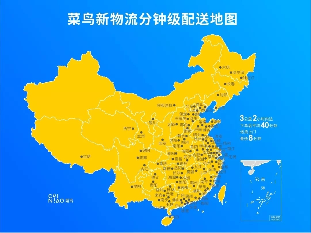 今年1月以來,菜鳥與天貓聯(lián)手商家及物流合作伙伴,共同推出門店發(fā)貨分鐘級(jí)配送服務(wù),“網(wǎng)上下單、樓下發(fā)貨”,目前平均用時(shí)40分鐘,最快僅8分鐘就送貨上門。